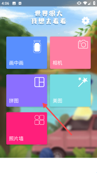 1、打开软件,点击页面中的【拼图】按钮进入下一界面