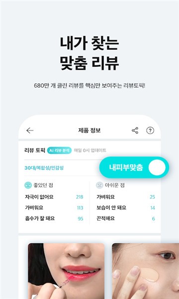 hwahae是一款非常不错的韩国美妆app,深受广大爱美人士喜爱,专业检测平台,为广大小伙伴们智能分析肤质,了解个人皮肤状态,挑选最合适的护肤、彩妆等产品,在这里发现不一样的你,以及丰富的真人测评,教学视频可以查看,感兴趣的用户朋友们快来下载吧!