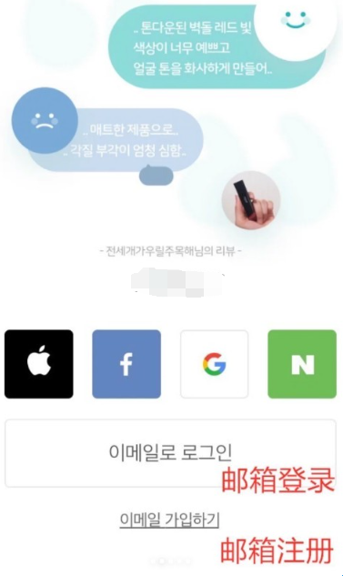 2、第一个页面就是“登陆方式”,分别为「Apple ID」、「Facebook脸书」、「Google谷歌账户」、「Naver」,以及「邮箱」,中国用户基本选择「邮箱」注册化解!