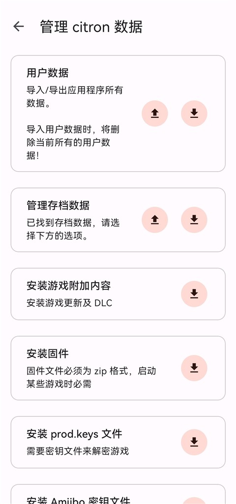 密钥为key结尾的文件,固件文件必须为zip格式的文件,这两个文件是启动部分游戏必不可少的。