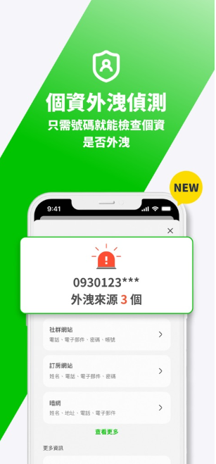 3、进入 “ID Security”后,按照提示输入需要检查的电话号码或 email电子邮件等个人信息,点击检查按钮,Whoscall会利用其数据库和技术手段,检测该信息是否存在外洩风险等情况,并显示相应的结果和提示。如果想查看更详细的信息,可以单击每个泄漏源进行查看。除了清楚地显示泄露的数据项外,它还将显示数据泄露的日期并提供建议的补救措施。