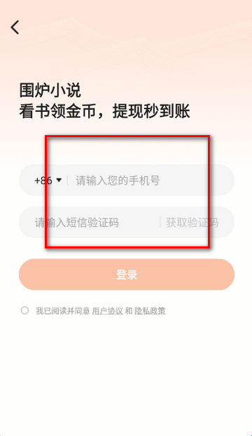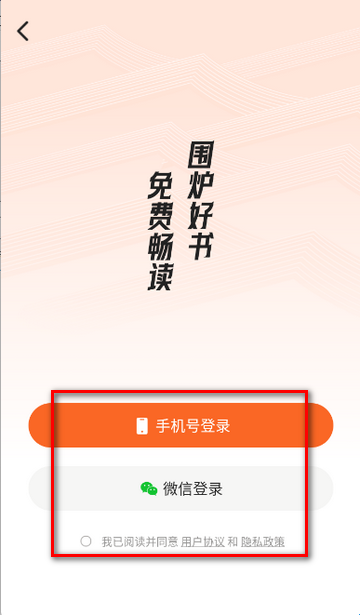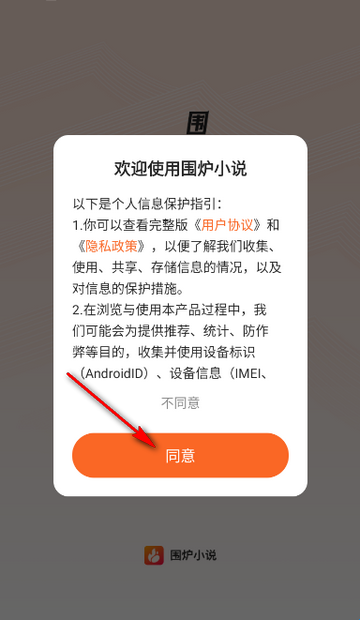 1、打开围炉小说app,点击同意隐私政策。