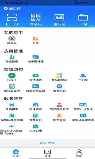 5、在主页可以看到有网证码【出示“网证”动态二维码,即可办理相关业务。目前已接入南京近4000家旅馆,车驾管、出入境等自助服务终端设备】