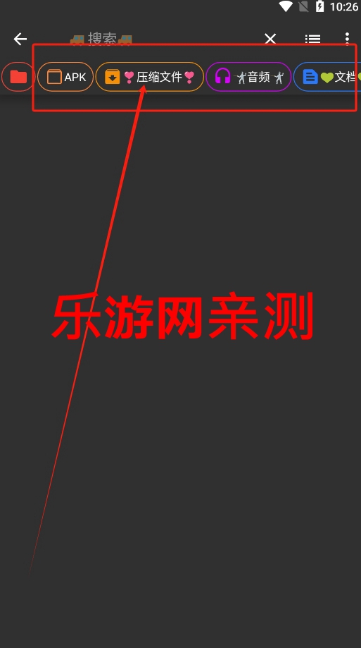 3、点击搜索栏,可以查找APK文件、压缩文件、音频以及文档,在工作办公时使用,尤为方便。