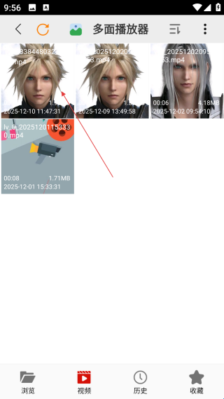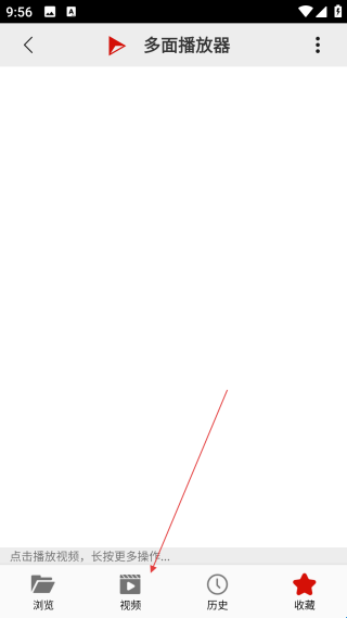 1、进入多面播放器页面后,点击底部的【视频】选项,即可查看对应的视频内容并进行相关操作。