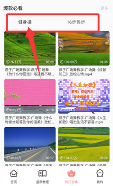 1、在热门合辑选择健身操,浏览广场舞教学视频。
