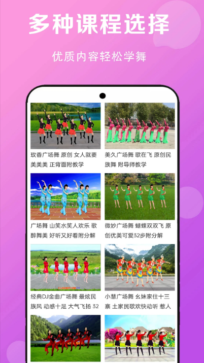 2、海量的广场舞曲目教学内容都可随心选择,就可随心学跳。