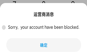这条英文短信中,核心的英文词汇是blocked。出现了blocked,就表明是被冻结了。如下图:
