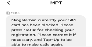 2、收到了MPT发来的手机号码已被冻结的短信: