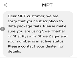 3、充值流量时,收到了MPT发来的流量充值失败的短信英文全文如下: