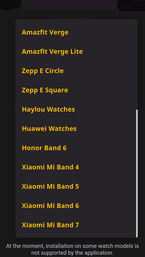 1、首先需要在本站下载安装AmazFaces,进入该软件后首先需要选择你的设备,软件内提供了市场上大多数的手环,只需选择你的手环型号即可