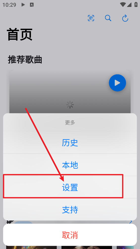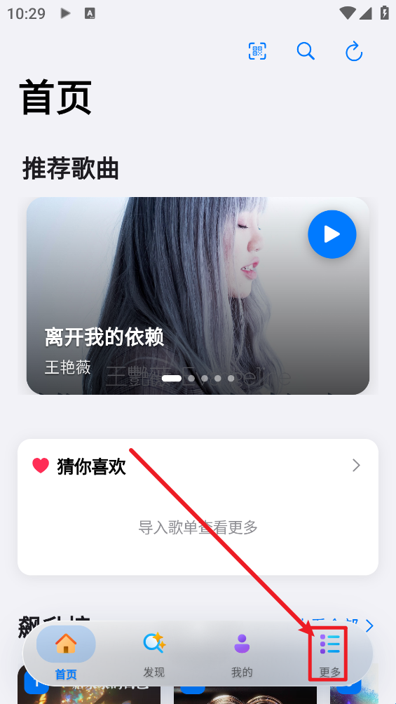 1、打开Cyrene Music,在首页点击下方“更多”。