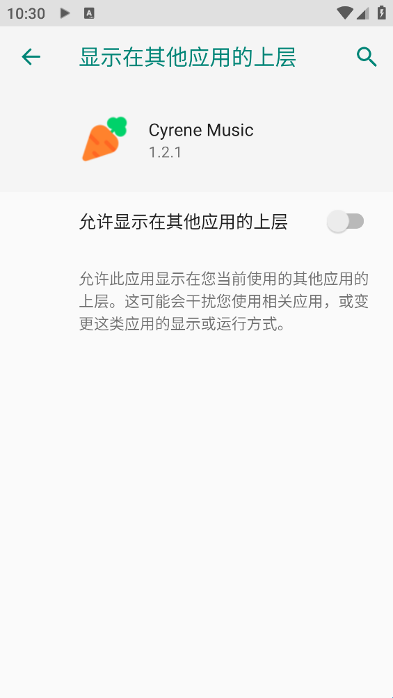 5、开启悬浮窗权限,允许Cyrene Music显示在其他应用的上层。