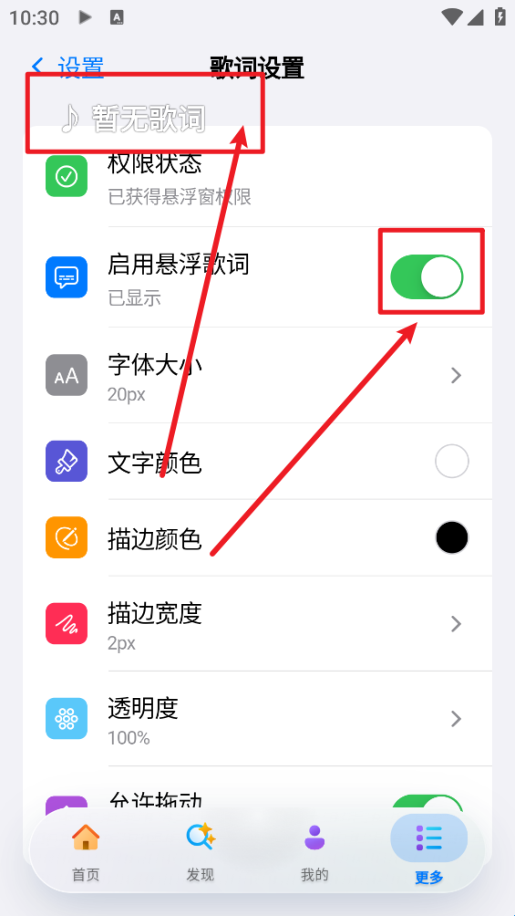 4、点击“启用悬浮歌词”。