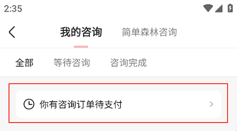 2、点击“你有咨询订单待支付”,若您已经支付下单也可以点击下单的订单;