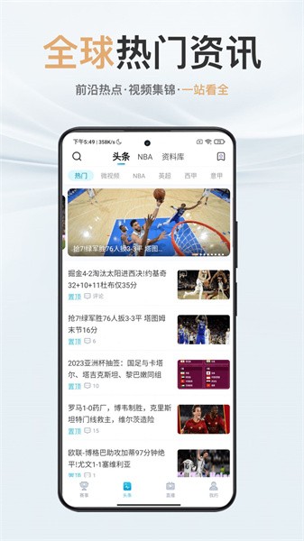 芸豆直播nba是一款非常有趣的观看体育赛事的体育直播软件,涵盖足球,篮球,网球,田径等多种世界顶级体育赛事直播,画质超清,播放流畅,多种语言解说和视角感受带你享受最极致的体育直播享受,平台实时更新最新最热门的资讯,让你能够轻松观看最喜欢赛事,喜欢这款体育直播软件的小伙伴们快来下载试试吧!