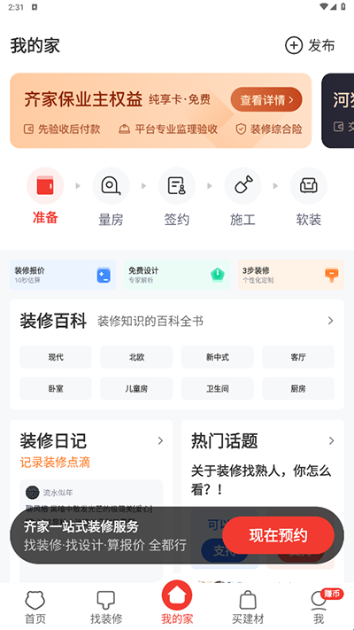 3、我的家版块内用户可以定制装修方案,了解装修知识。