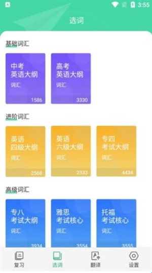 2、进入选词页面,选择词汇类型;