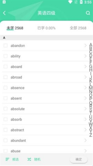 3、单词列表中,即时更新的单词记忆状况图示,一目了然;