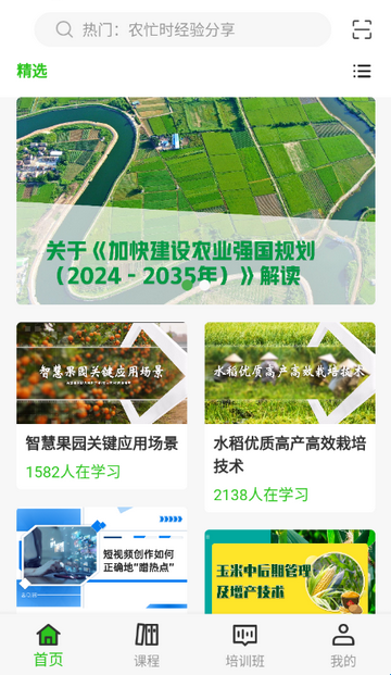 是非常好用的农业学习软件,这里有非常丰富的农业课程相关的知识,可以根据频道种类来学习对应的水果蔬菜知识,支持加入班级参与培训,还能查看实时的学习进度。