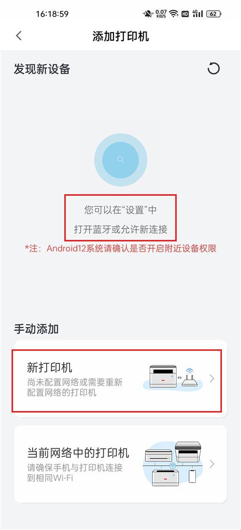 2、打开手机蓝牙,会自动搜索打印机,也可以手动添加打印机