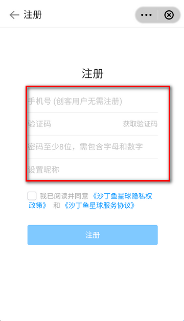 1、打开沙丁鱼星球app,输入手机号密码即可登录
