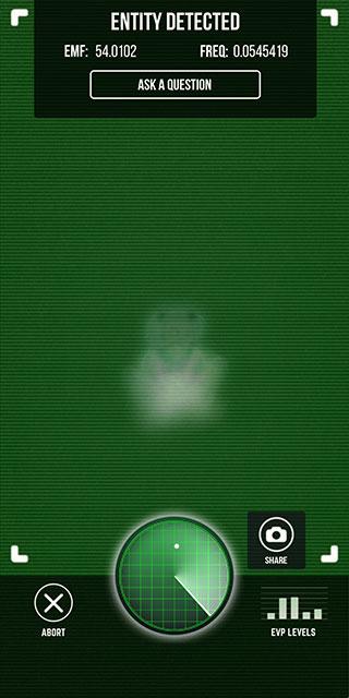 1、只要你打开软件,放置在空中,画面上就会出现鬼魂搜索雷达,一旦附近有鬼魂靠近,它就会发出警告和影像。