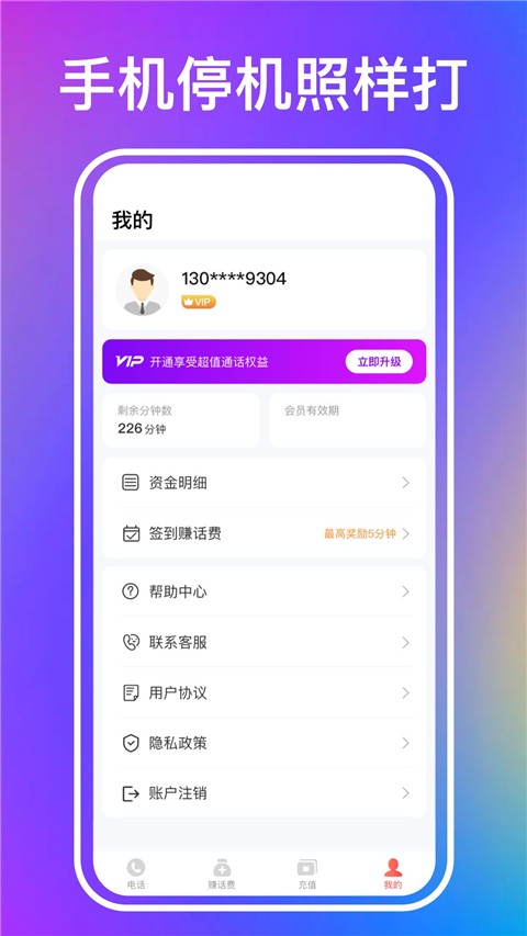 1.【赠送通话时长】只需要每日进行签到,七日就可获得五分钟通话。