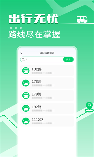 4、用户还可以通过搜索的方式快速查找公交及路线