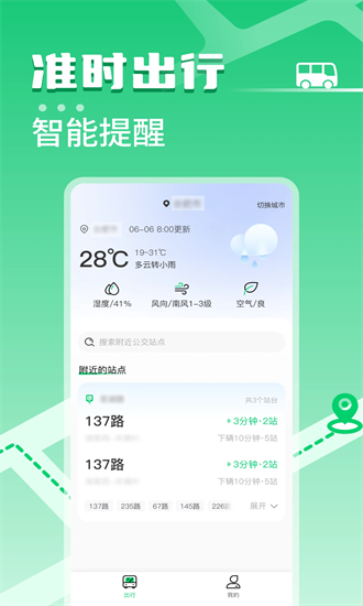 该应用覆盖全国160多个城市的公交线路,提供实时车辆位置、到站时间预测以及动态换乘方案等核心功能。无论是日常通勤还是城市探索,它都能帮助用户轻松规划行程,避免错过公交。此外,软件还整合了天气信息,让出行更加无忧。简洁的界面设计和强大的功能结合,使其成为都市生活中不可或缺的出行助手。