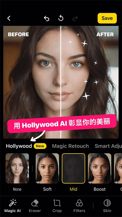 不同的功能、预先制作的照片滤镜和效果使您可以编辑所有瑕疵,从而获得最佳效果;