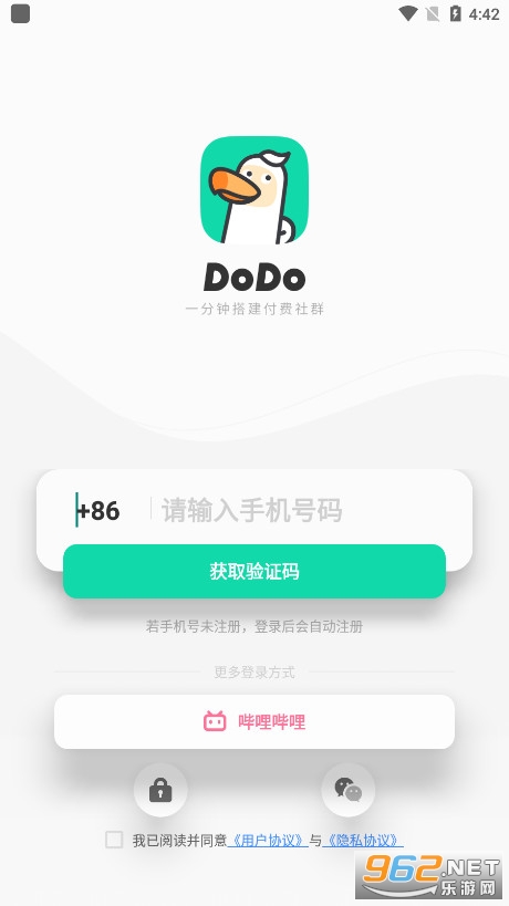 1、下载DoDo并进入,使用手机号加验证码的方式完成登入。