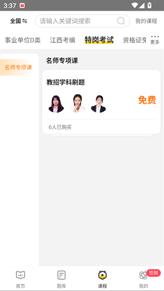 4、课程板块,根据要求选“特岗考试”等,可参与免费名师专项课(如教招学科刷题课),跟着老师系统备考。