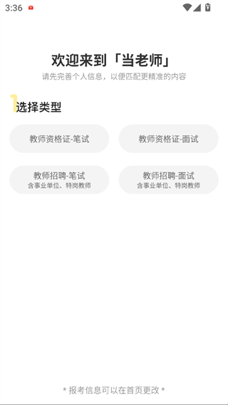 1、先选备考类型,根据需求在教资笔试/面试、教招笔试/面试里选定方向。