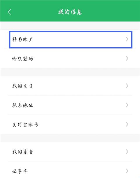 3、点击【转移账户】。