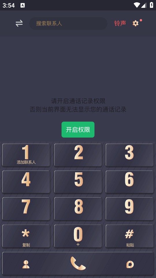 3、若权限未开启,界面显示无法查看通话记录,需再次确认权限开启情况,确保通话记录正常显示,以便进行拨号等通讯操作。