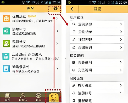 4、余额查询:进入软件的“更多良帽”中的“设置”选项,即可查看当前余额及详细话费清单。