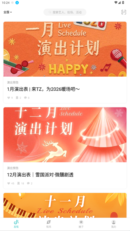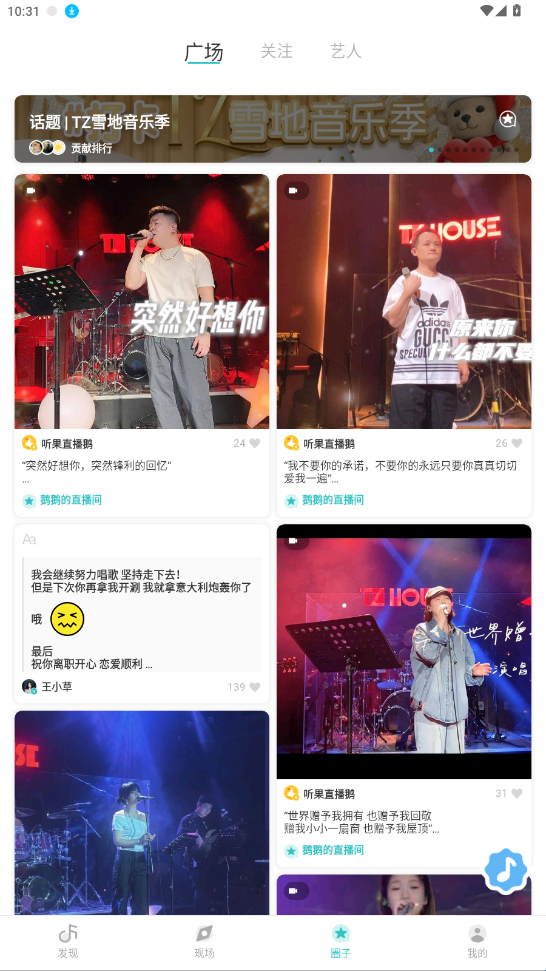 掌握艺人的第一手信息,关注追踪喜爱艺人的最新动态,收听最新单曲,观看演出视频