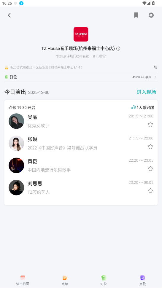 浏览演出安排,在线下单点歌送出祝福,动动手指,将现场变为自己的Party,享受专属的私人定制