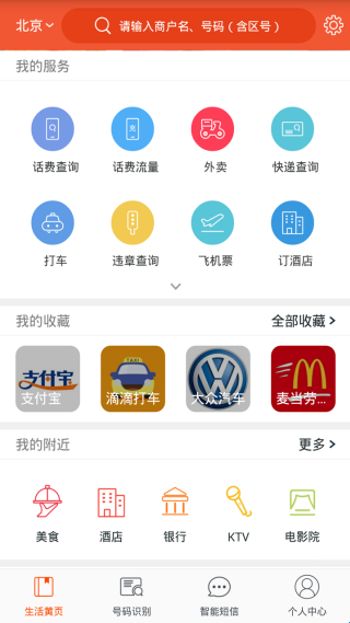 2、这里展示了生活黄页,号码识别,智能短信;