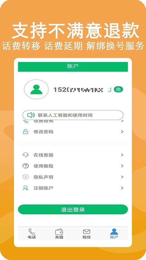 8、【贴心服务】支持不满意退款,话费转移,话费延期,解绑换号,客服全天候贴心服务;
