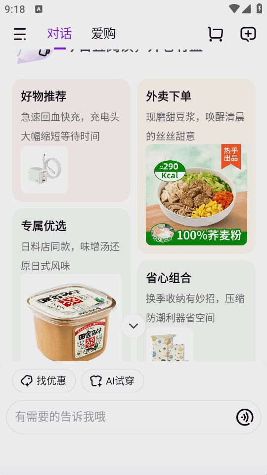 京东官方打造的一款ai购物生活助手,京东AI购app官方正版,一个侍思考,可以购物,还可以聊天的生活服务购物帮手,可以直接使用京东账号登录,整合了京东丰富的供应链,为用户提供便捷的购物服务,还有各种问答,解决购物一站式问题。