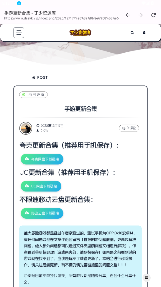 1、问题:丁少资源库APP是免费的吗?下载游戏需要付费吗?解答:完全免费!它是丁少个人制作的免费游戏分享平台,所有游戏资源均免费下载,无付费门槛、无强制充值,放心使用。