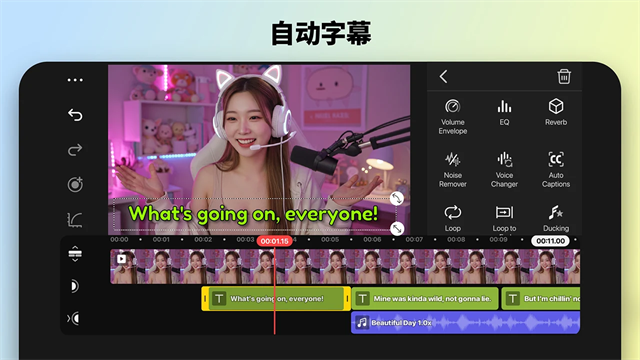 支持多重音轨、曲线调音、音量包络线等,音频功能超级强大!