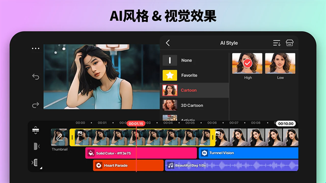 支持横竖屏,多层编辑模式,最高4k画质输出轻松应对不同场景