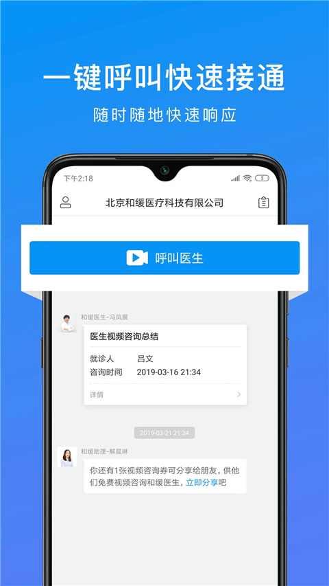 3、支持用户快速发起呼叫一键连接医生,缩短咨询等待时间提升沟通效率。