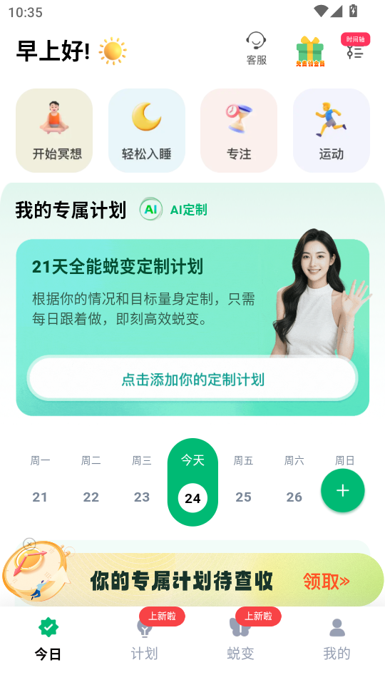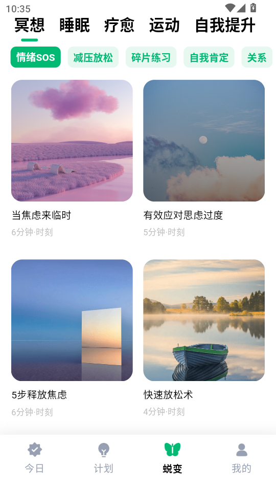 《心晴》是一款聚焦身心健康管理的科学蜕变工具,通过智能算法生成个性化日常计划,如冥想、正念饮食等,结合高品质白噪音、睡眠故事及正念课程,帮助用户无痛自律、缓解焦虑、改善睡眠。支持灵活调整习惯执行时间与频次,提供打卡追踪与数据可视化,助力用户重建内在情绪系统,实现身心平衡与自我成长。