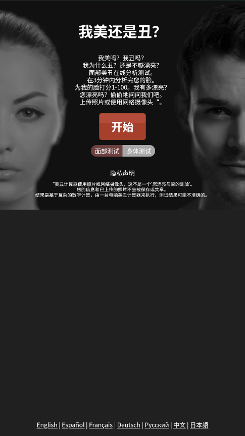 非常有趣的一款测试软件,支持中文,操作简单,轻松几步,就可以快速测出你的颜值值多少分,还有专业的测试报告,帮助你更加全面的了解自己!