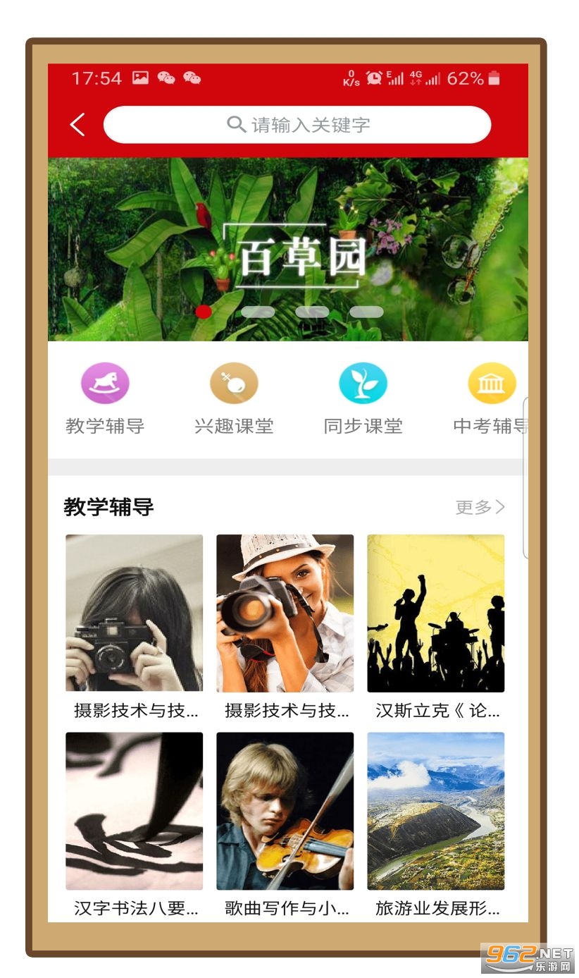 学习页面由教学辅导、兴趣课堂、同步课堂、中考辅导、高考辅导、职业培训、农业培训等栏目组成。