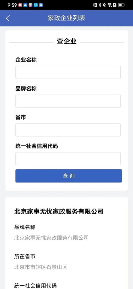 消费者无需注册、登录系统,可浏览家政行业相关政策措施、最新动态,可查询、浏览家政企业信用信息。